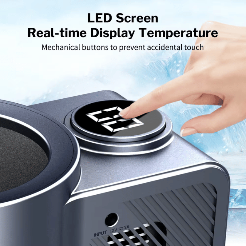 The LED display shows you the cooling temperature, with a mechanical round touch button which prevents accidental pressing while driving. It's simple, effective, safe and awesome!