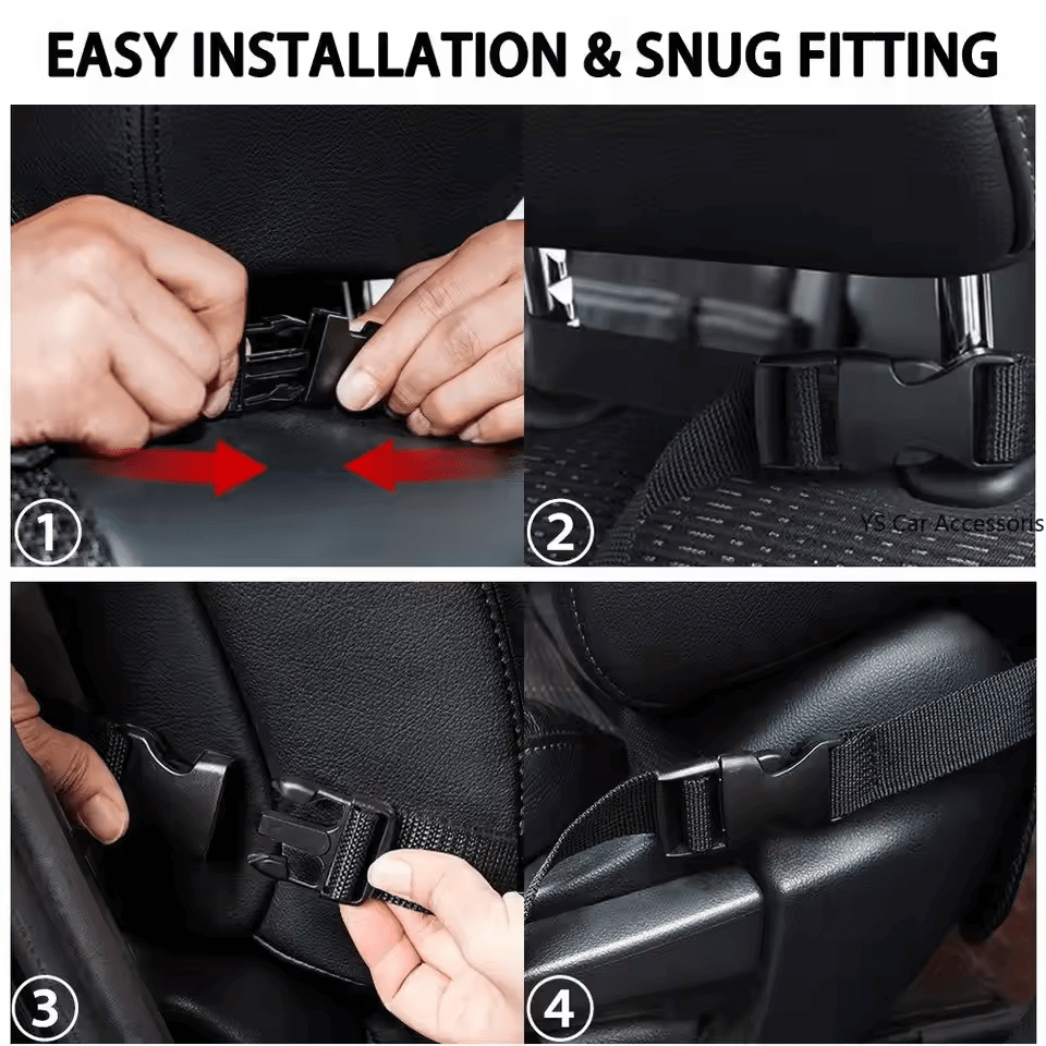Universally designed to fit most car seats with adjustable straps for quick and secure installation, holding all kinds of items within the pockets safely at the back of the front seats.