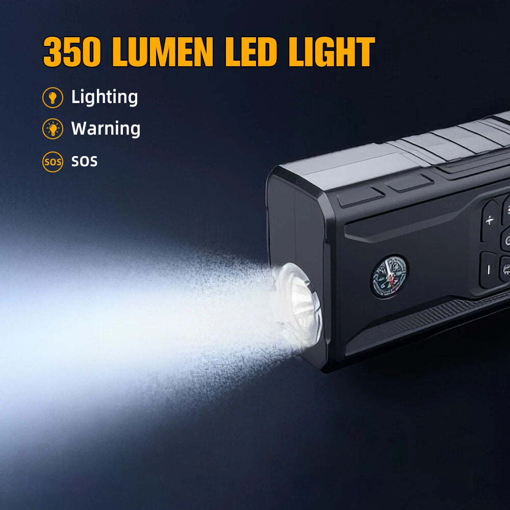 It also functions as a built-in power bank, allowing you to conveniently recharge your phone, tablet, or other USB-powered devices while on the go, helping you stay connected during emergencies or outdoor adventures.